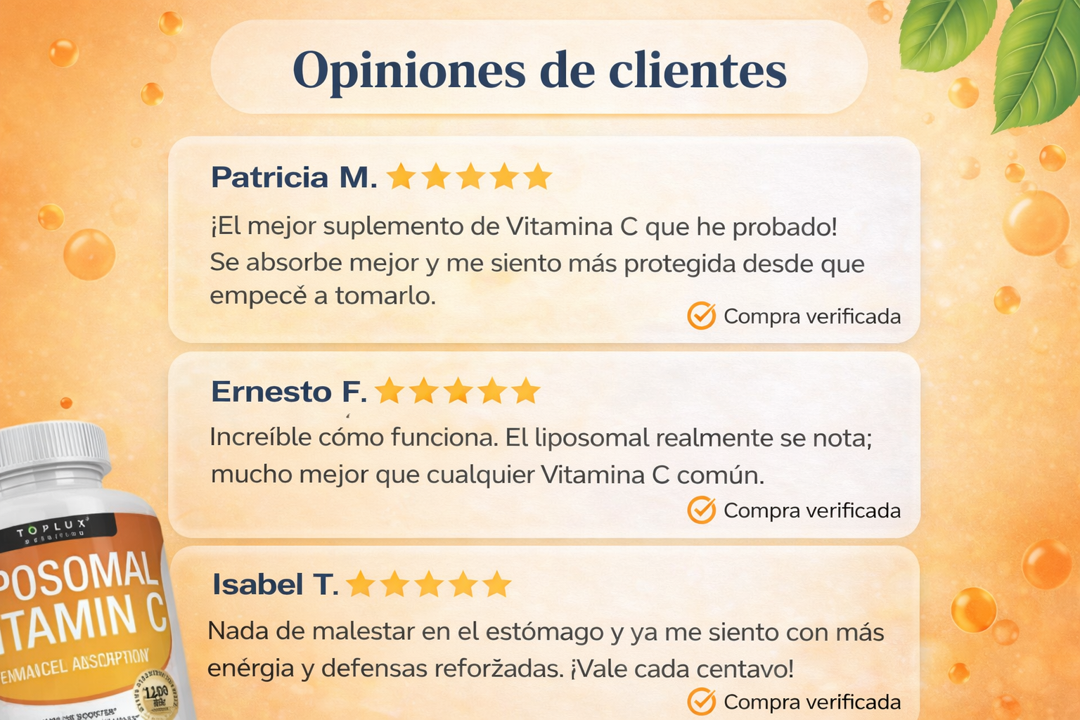 Porque su tecnología liposomal permite una absorción superior, haciendo que el cuerpo aproveche mucho más la vitamina en comparación con la vitamina C común.